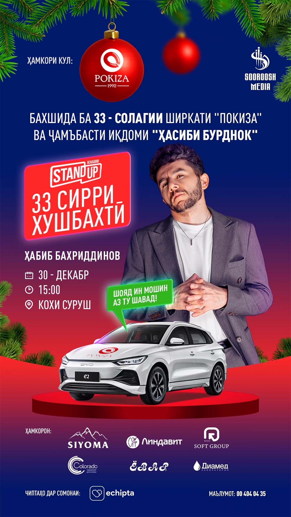 Стендапи нав барои шумои азиз ҳамҷоя бо Ширкати @pokiza_1992.tj бахшида ба 33 - солагии ширкат барномаи "33 - Сирри Хушбахтӣ' баҳри шумо!